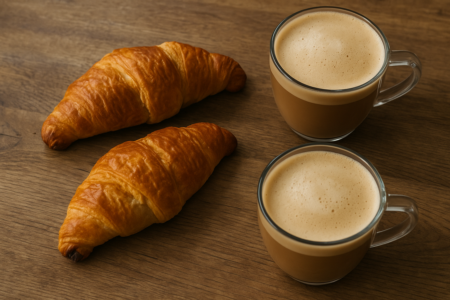 Back home, I made Sabrina and I a coffee and we sat down in the kitchen to talk through my morning — croissants on the table, slightly squashed but still warm. Standard post-shoot ritual.